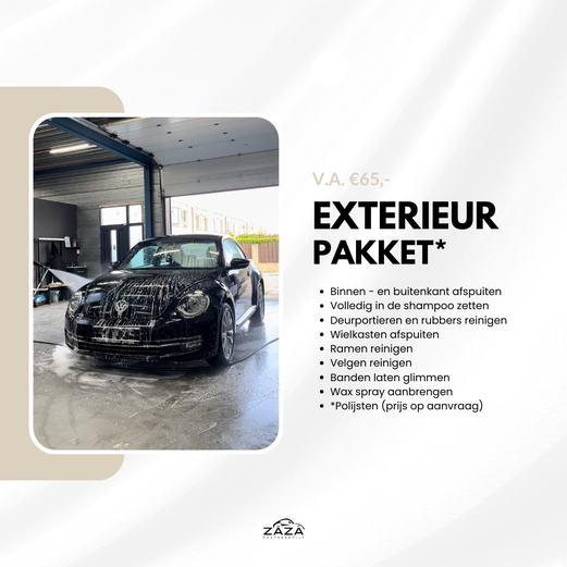 Bij Zaza Poetsbedrijf heb je de keuze tussen verschillende pakketten. Van alleen exterieur, interieur of een basispakket tot aan een VIP pakket of een Cermamische Coating. Voor elke auto hebben wij het juiste pakket. Heb je vragen over 1 van onze pakketten, of twijfel je tussen welk pakket je het beste kan kiezen i.v.m het aantal staps polijsten? Neem dan gerust contact met ons op. Wij geven graag vrijblijvend advies zodat jij voor het juiste pakket kan kiezen.